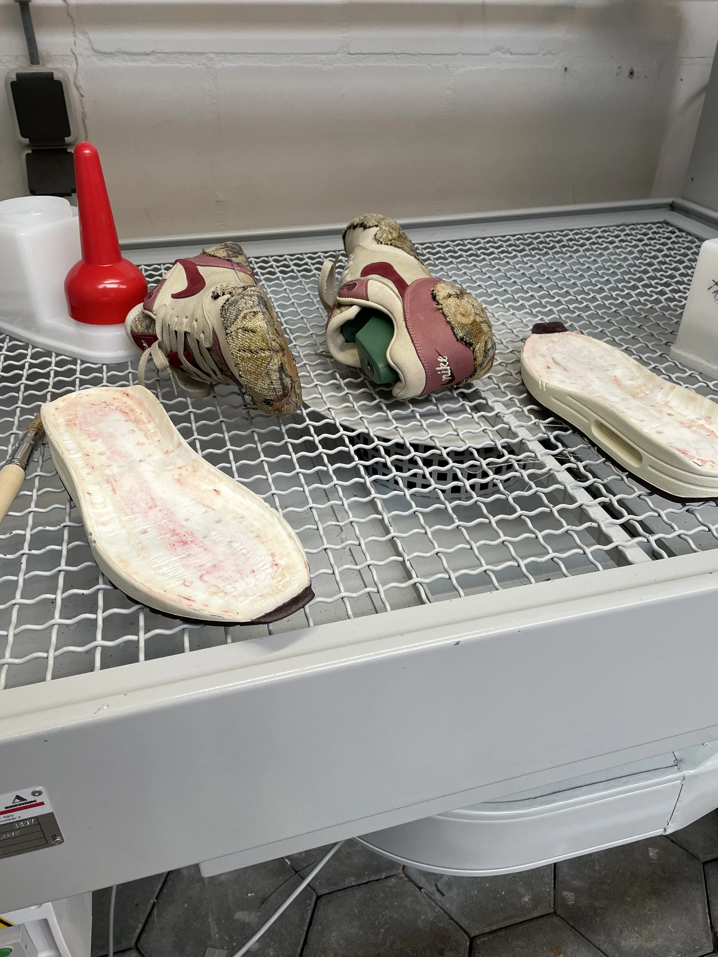 When making this shoe, we take the positioning of the fabric on the patterns into account. Below we show some process shots of the Air Max 1 - Oldfangled being made.